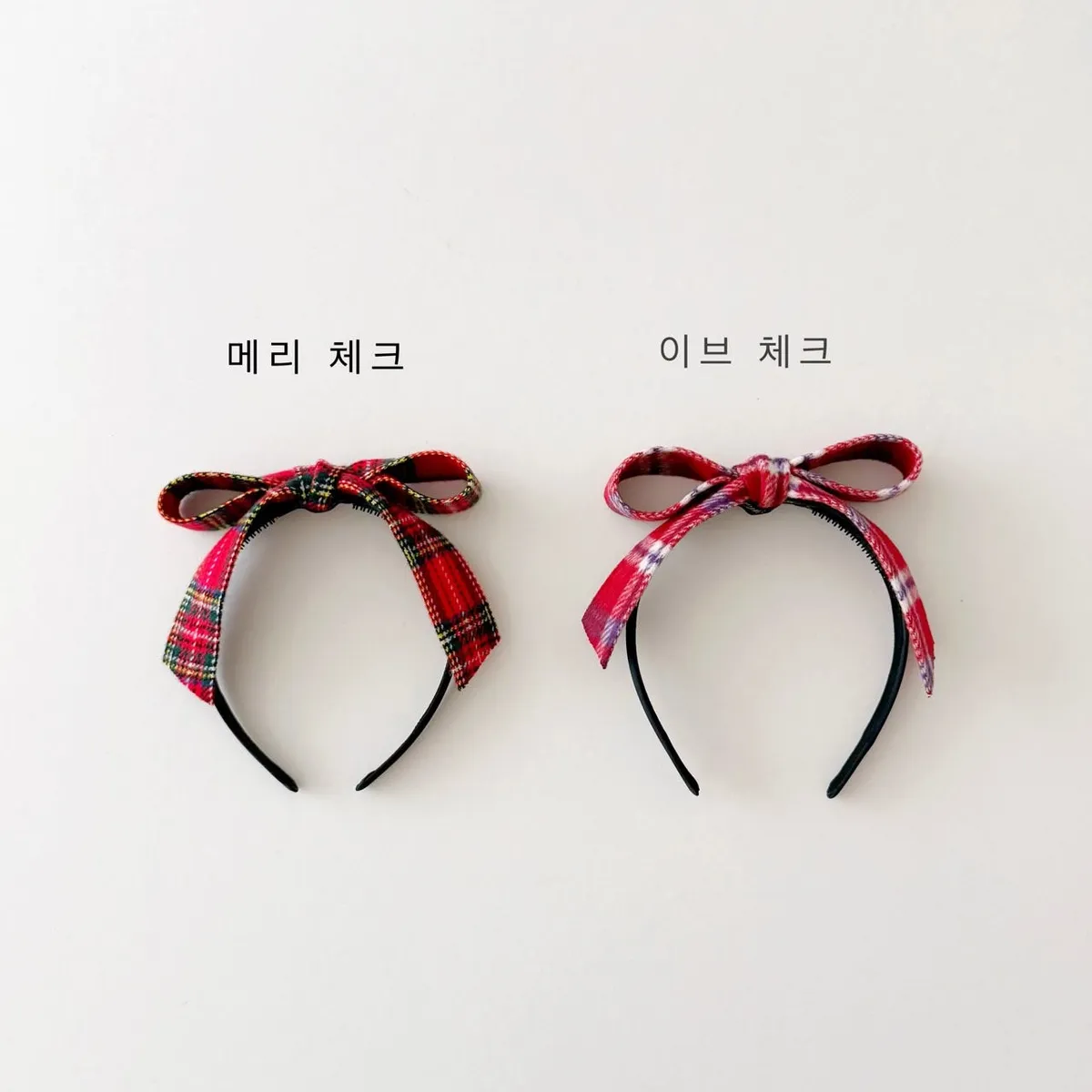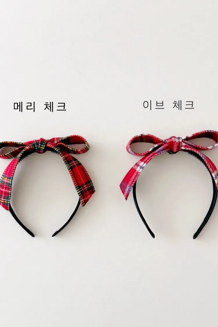 DAILY BEBE 聖誕紅格紋蝴蝶結髮箍