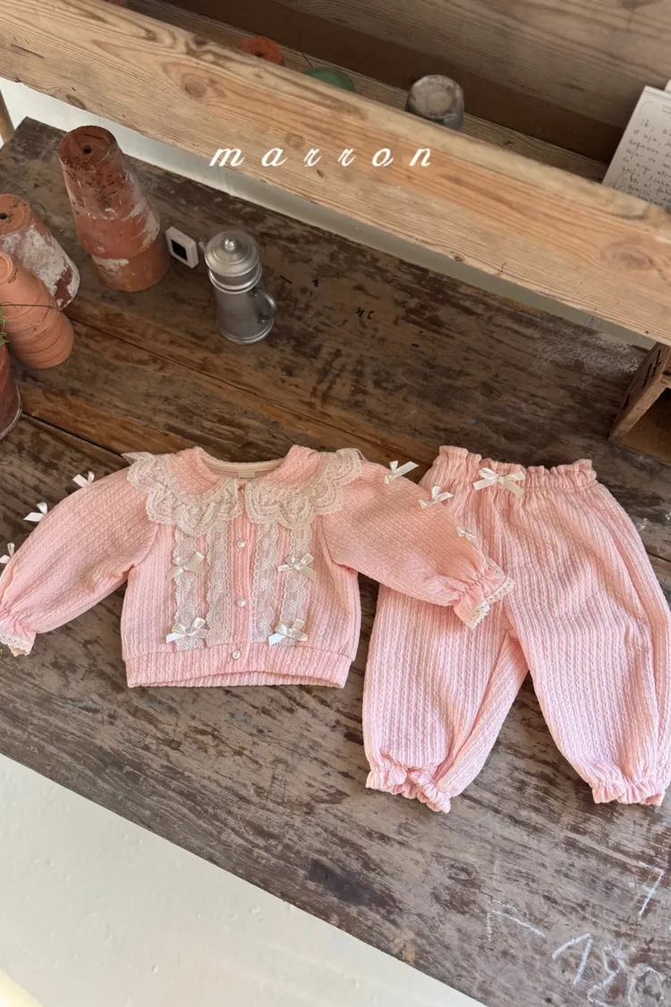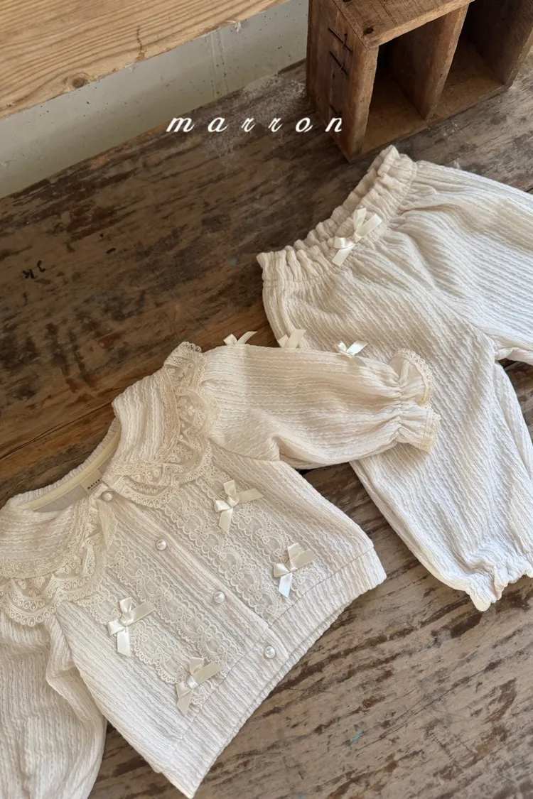 Marron蕾絲蝴蝶結開襟外套