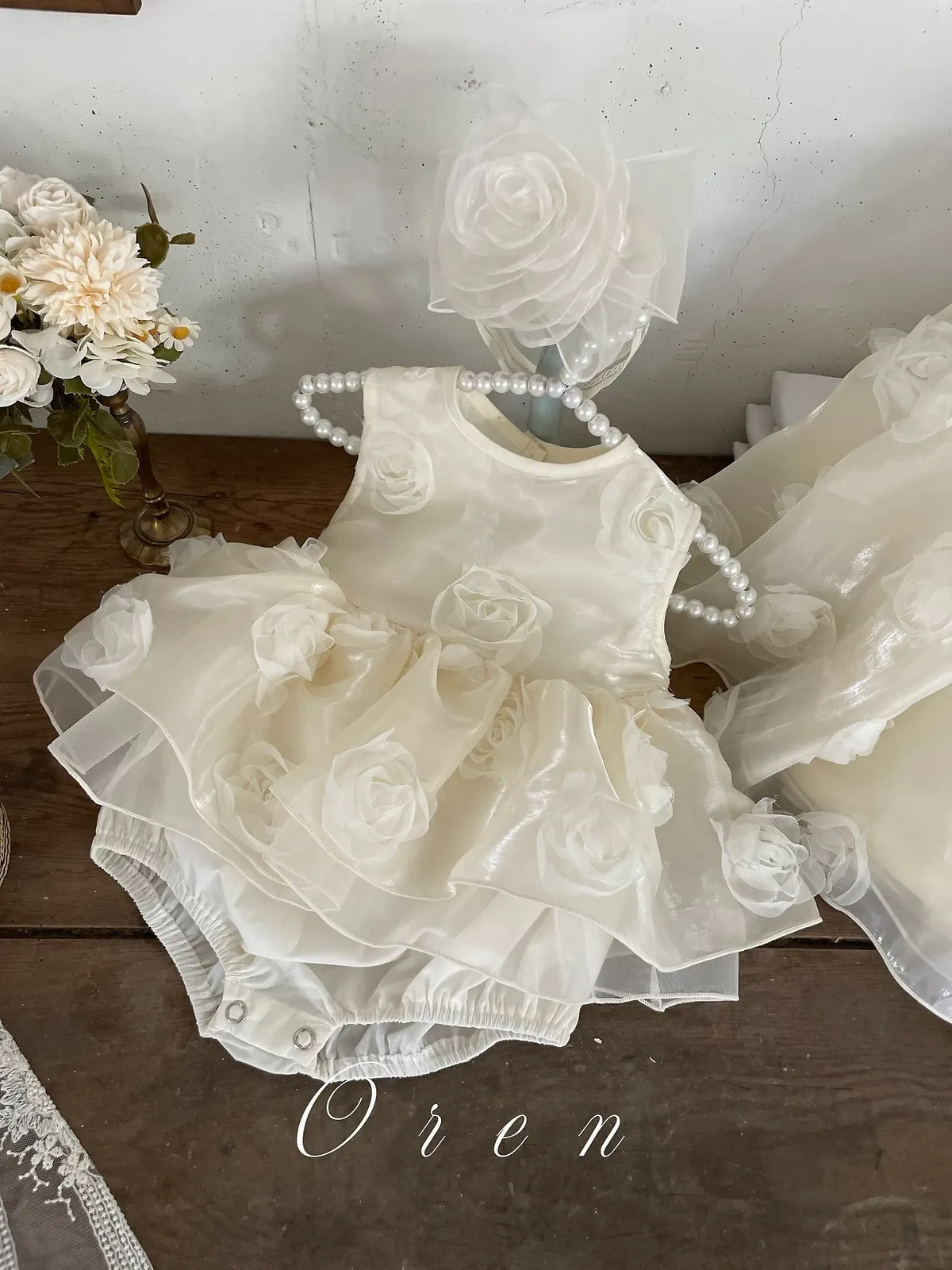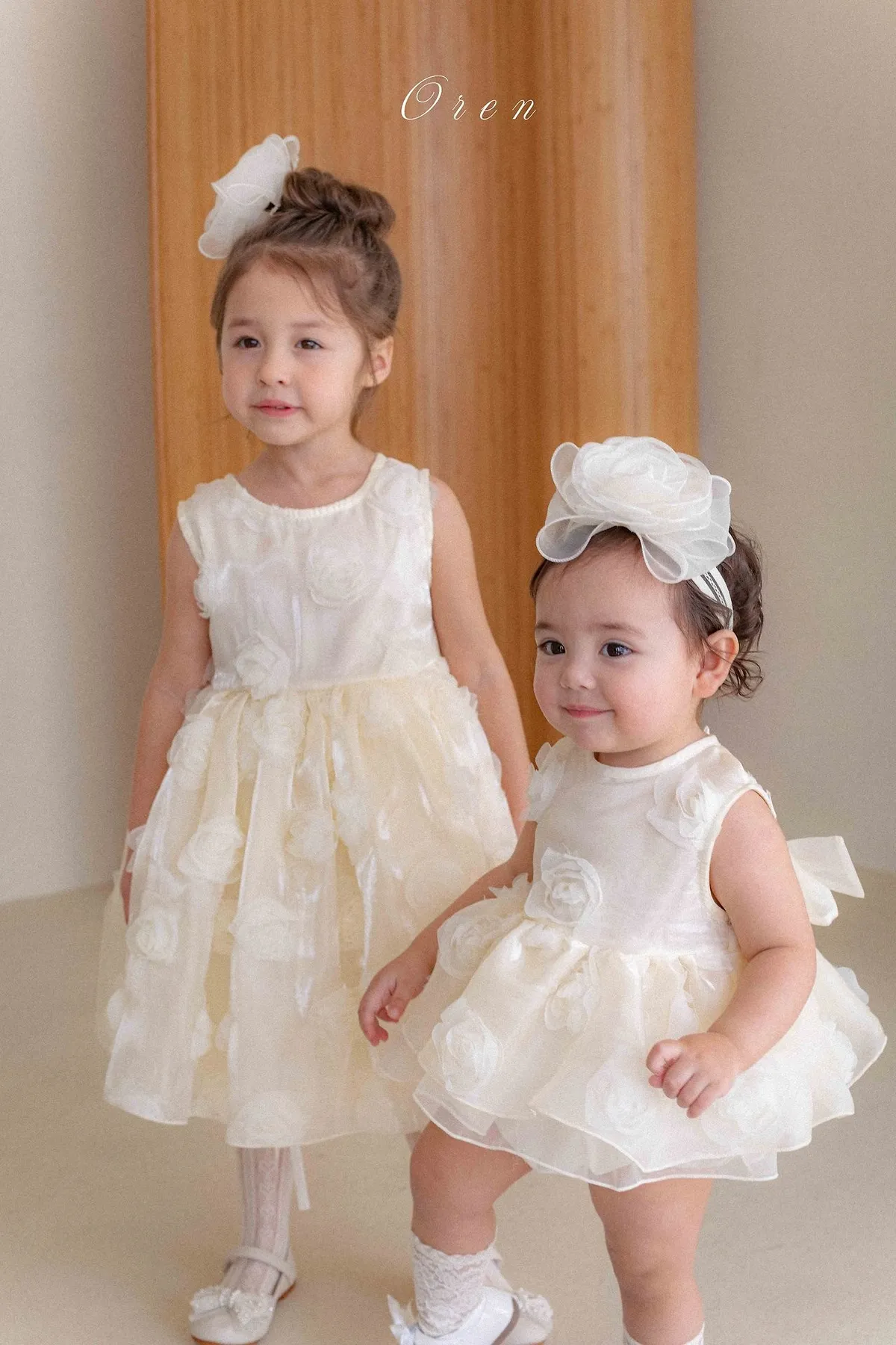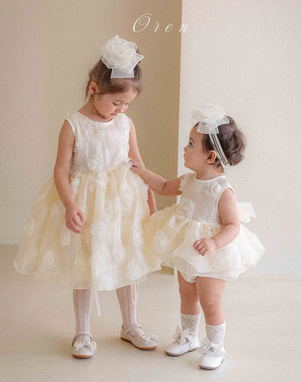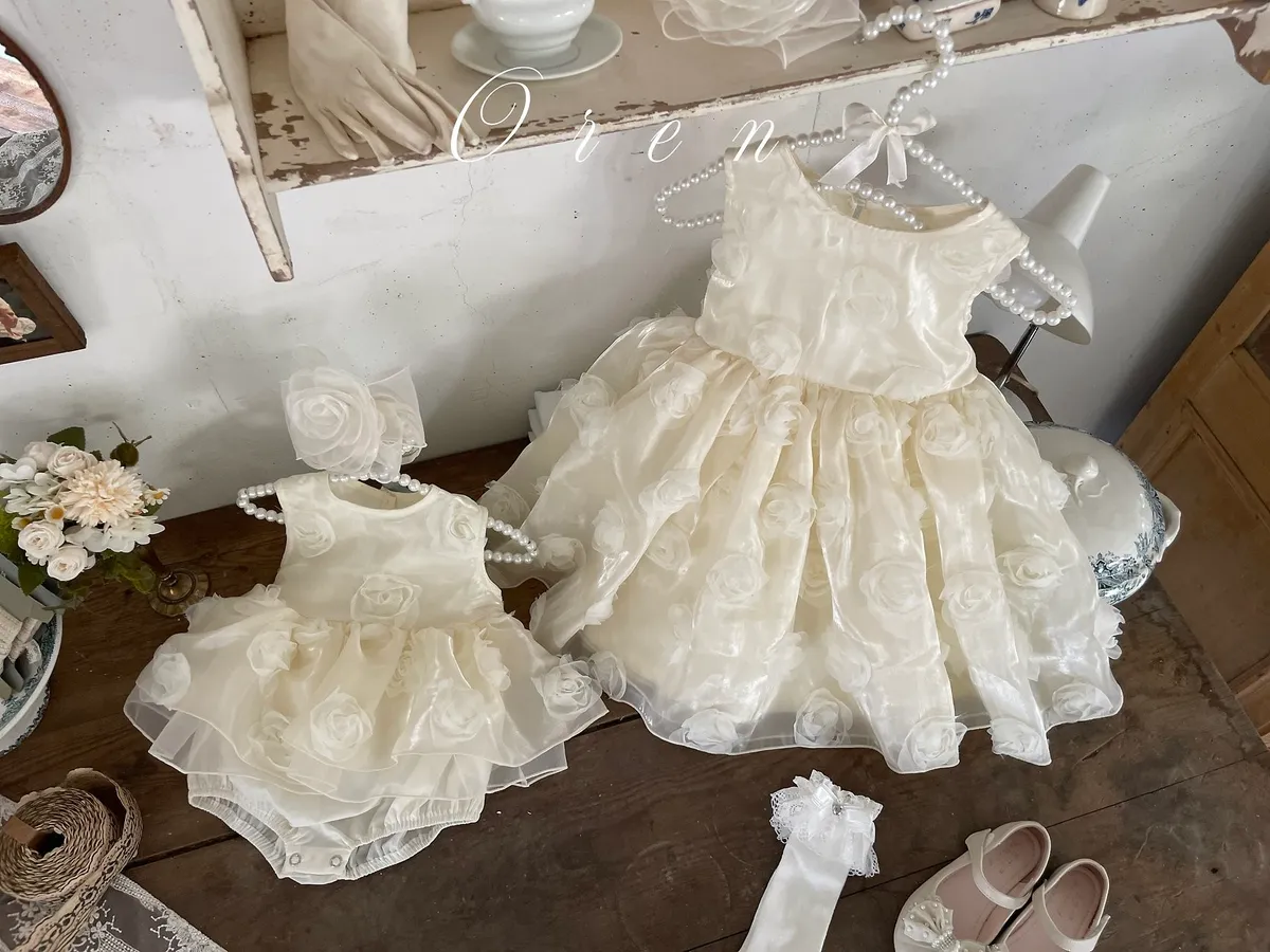 Oren無袖立體玫瑰包屁裙 姊妹裝