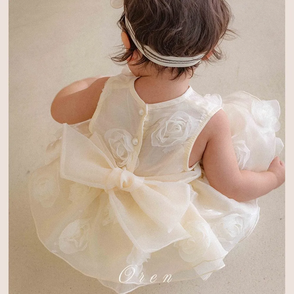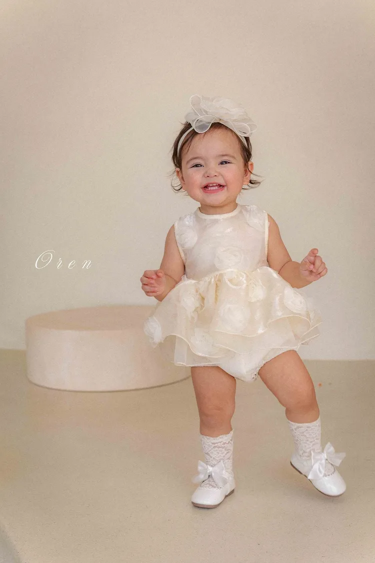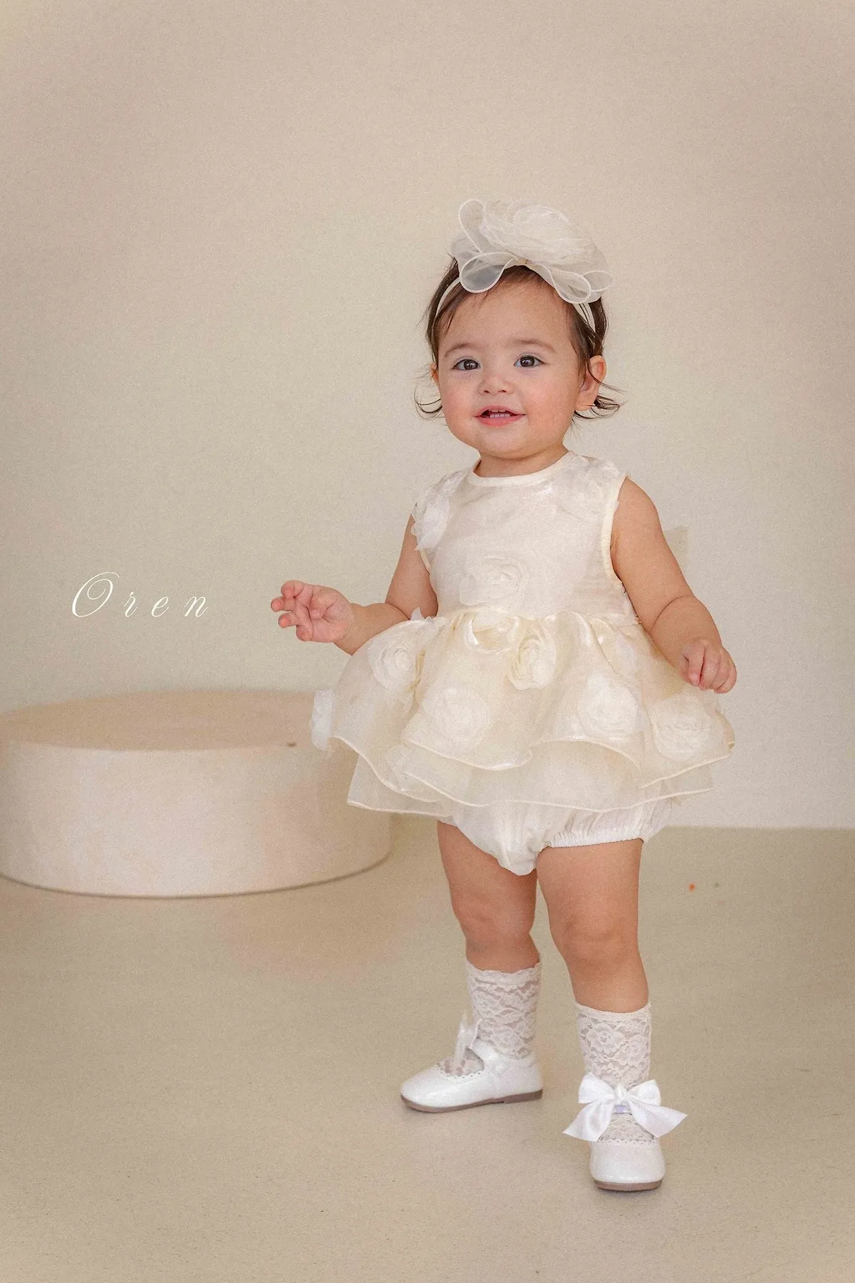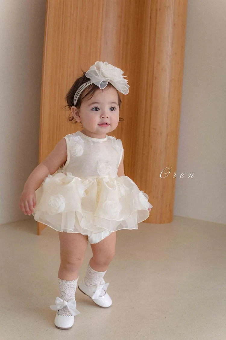 Oren無袖立體玫瑰包屁裙 姊妹裝