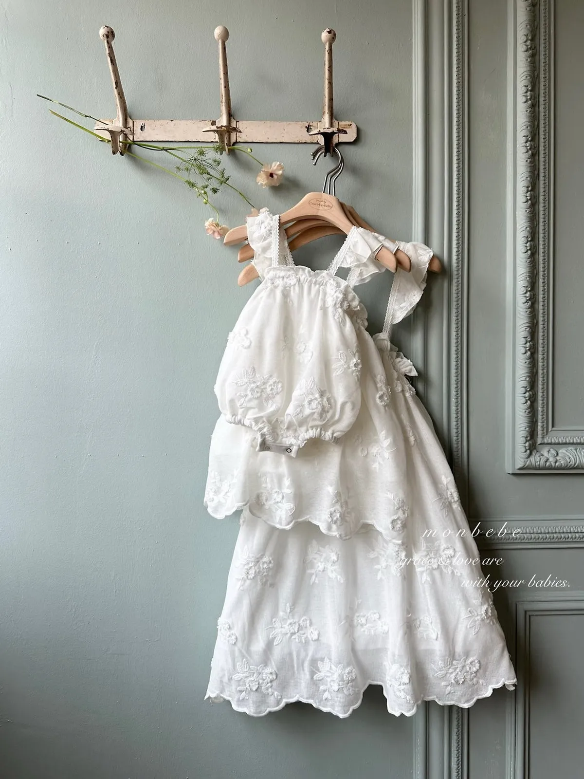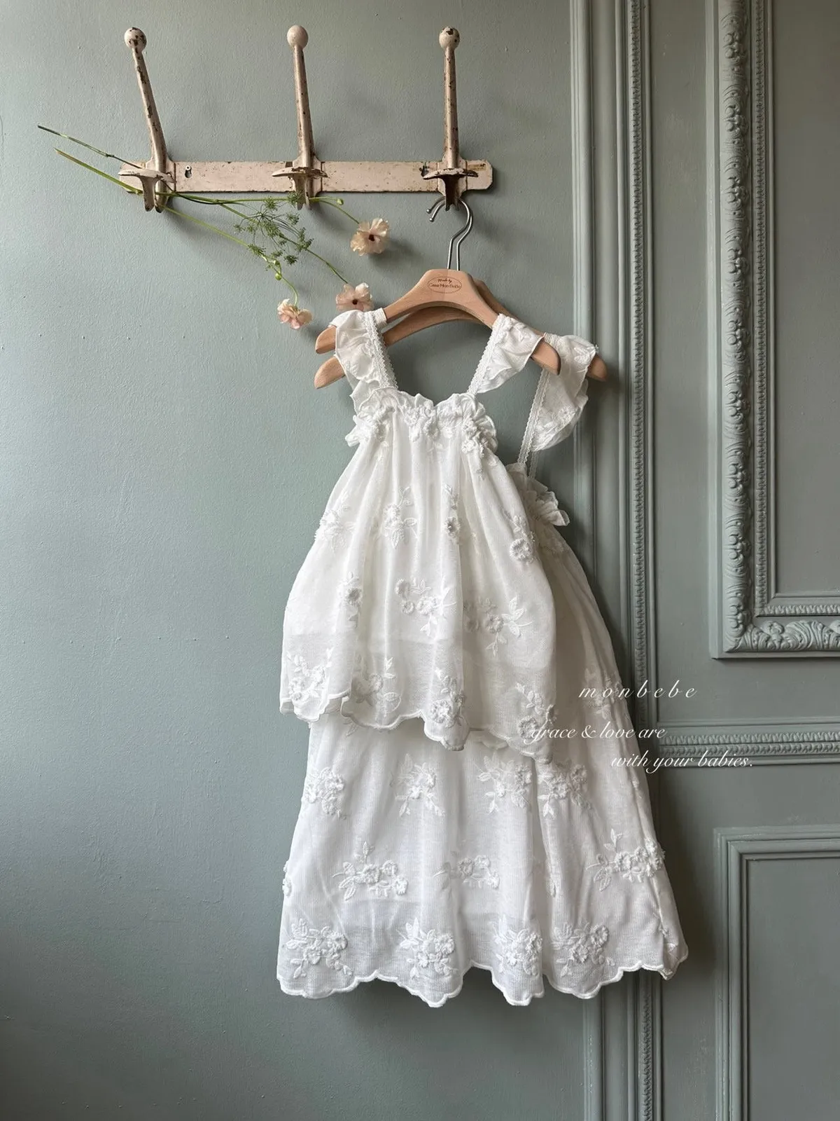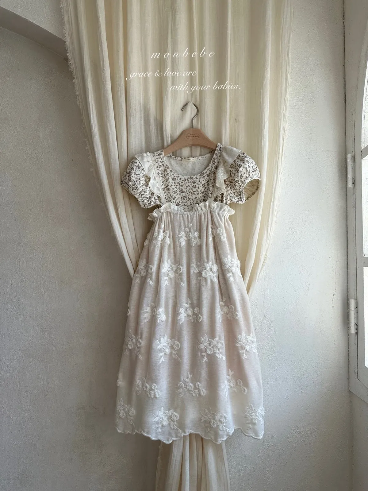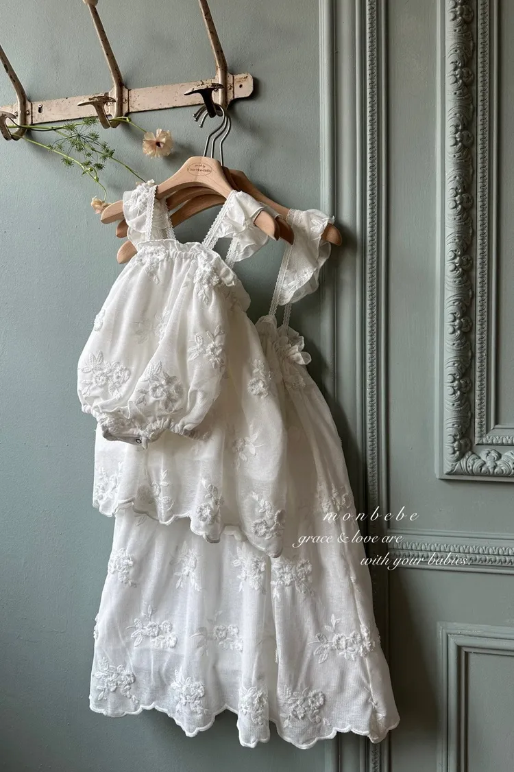 Monbebe繡花飄飄連身裙/親子裝(mom)
