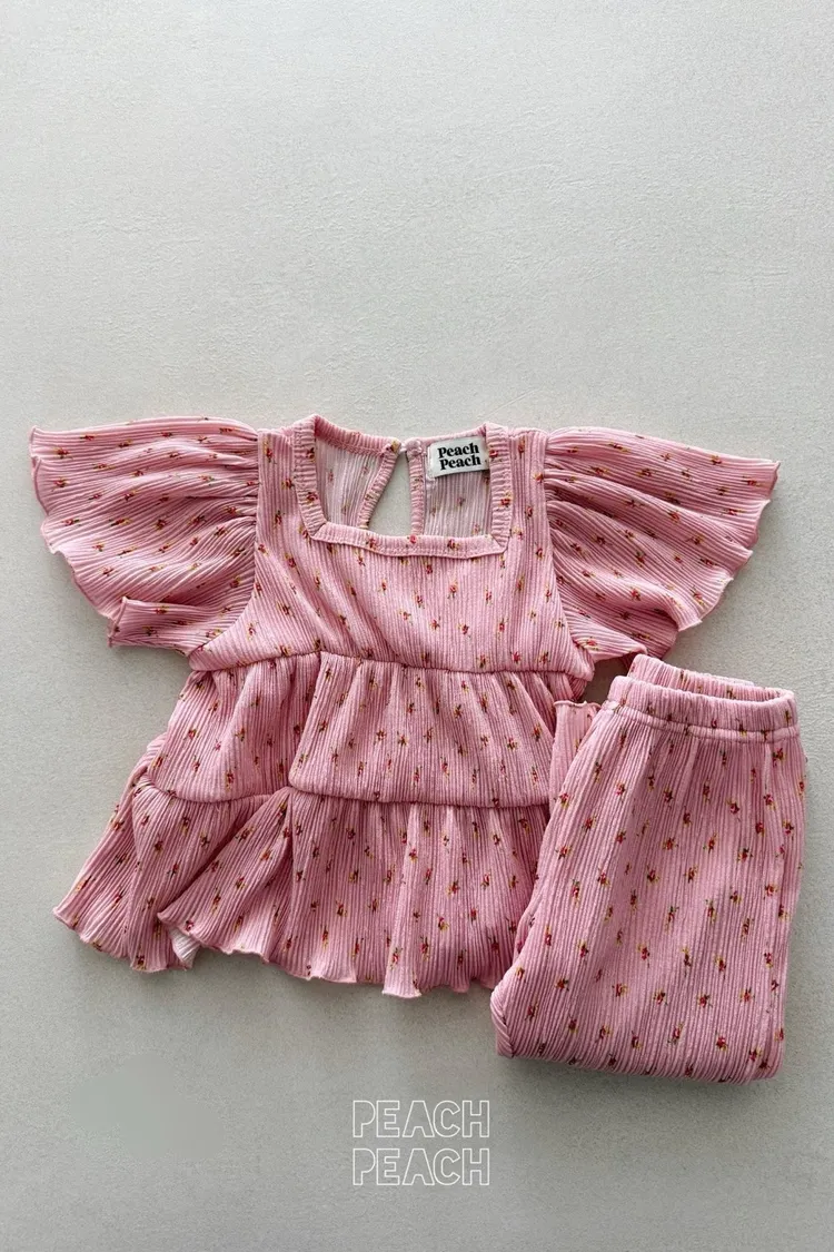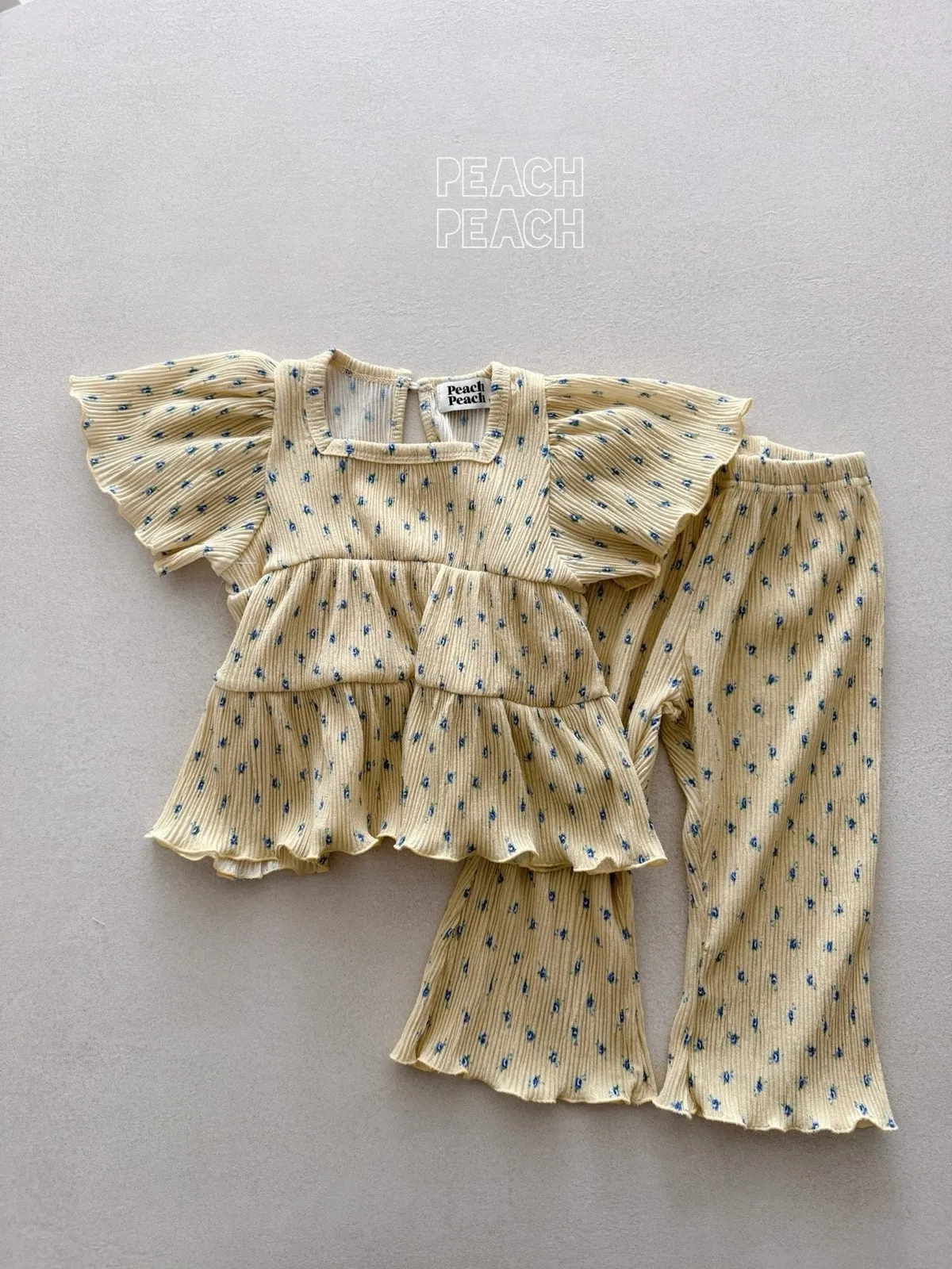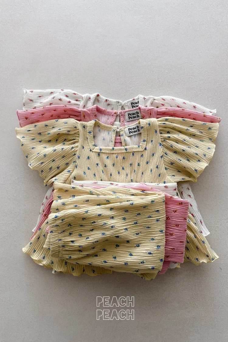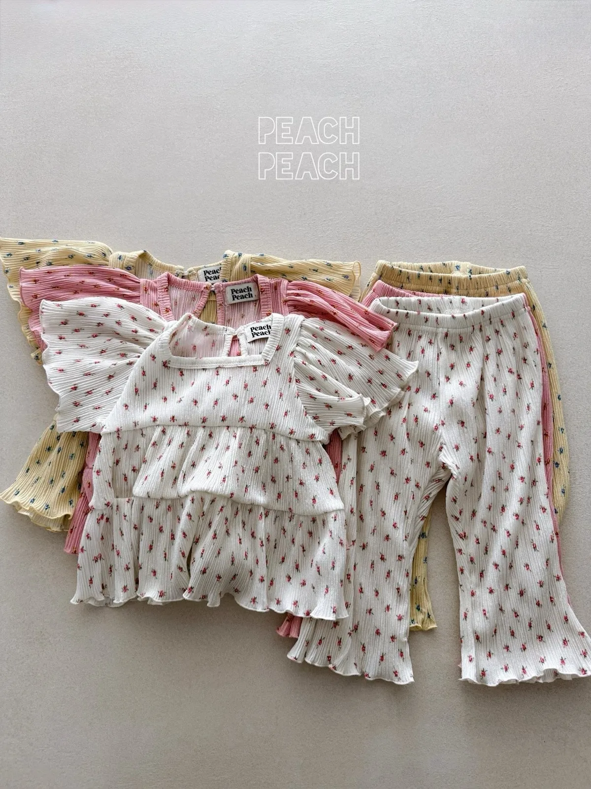 peach peach 2026 s u m m e r 🤍 - 코코 플리츠 세트 - 옐로우, 핑크, 아이 지난 시즌 멜로디 세트가 이번 시즌에는 잔잔한 플라워 패턴 플리츠 소재로 출시되었어요 :) 블라우스와 팬츠 모두 사랑스러움을 가득 담고 있어요! 컬러감은 또 세가지 모두 어찌나 예쁜지^^ 여름 내내 시원하게 입혀주세요💛💕🤍