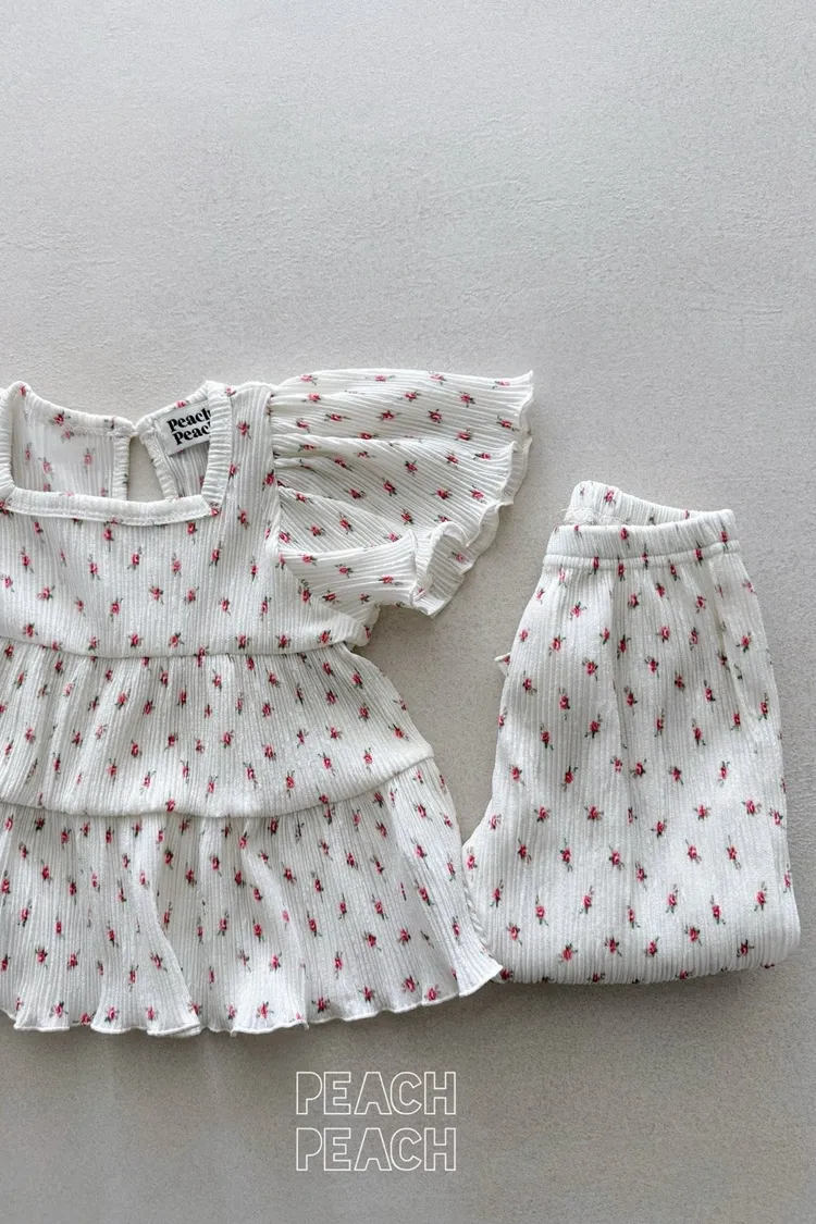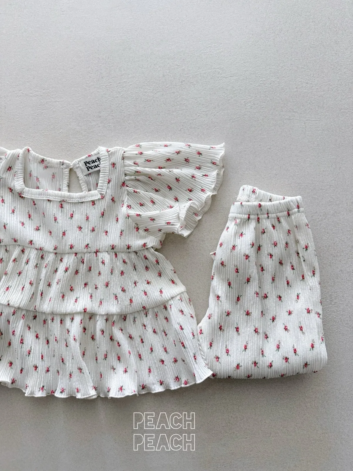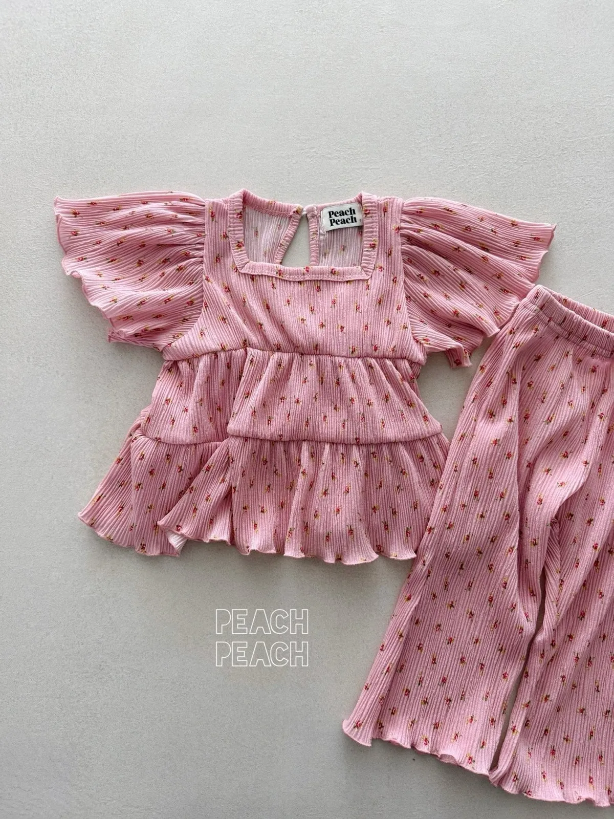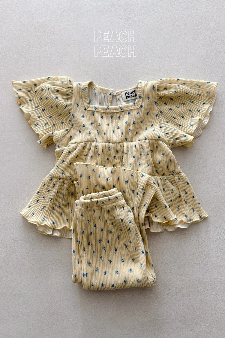 peach peach 2026 s u m m e r 🤍 - 코코 플리츠 세트 - 옐로우, 핑크, 아이 지난 시즌 멜로디 세트가 이번 시즌에는 잔잔한 플라워 패턴 플리츠 소재로 출시되었어요 :) 블라우스와 팬츠 모두 사랑스러움을 가득 담고 있어요! 컬러감은 또 세가지 모두 어찌나 예쁜지^^ 여름 내내 시원하게 입혀주세요💛💕🤍