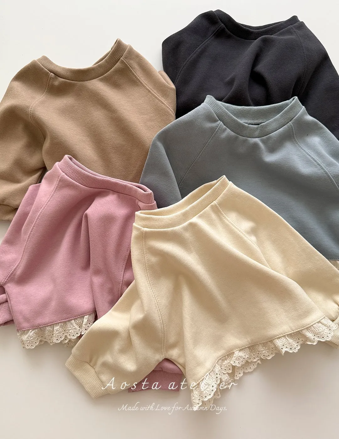 사랑스러운 레이스 디테일이 돋보이는 젤리 맨투맨입니다.