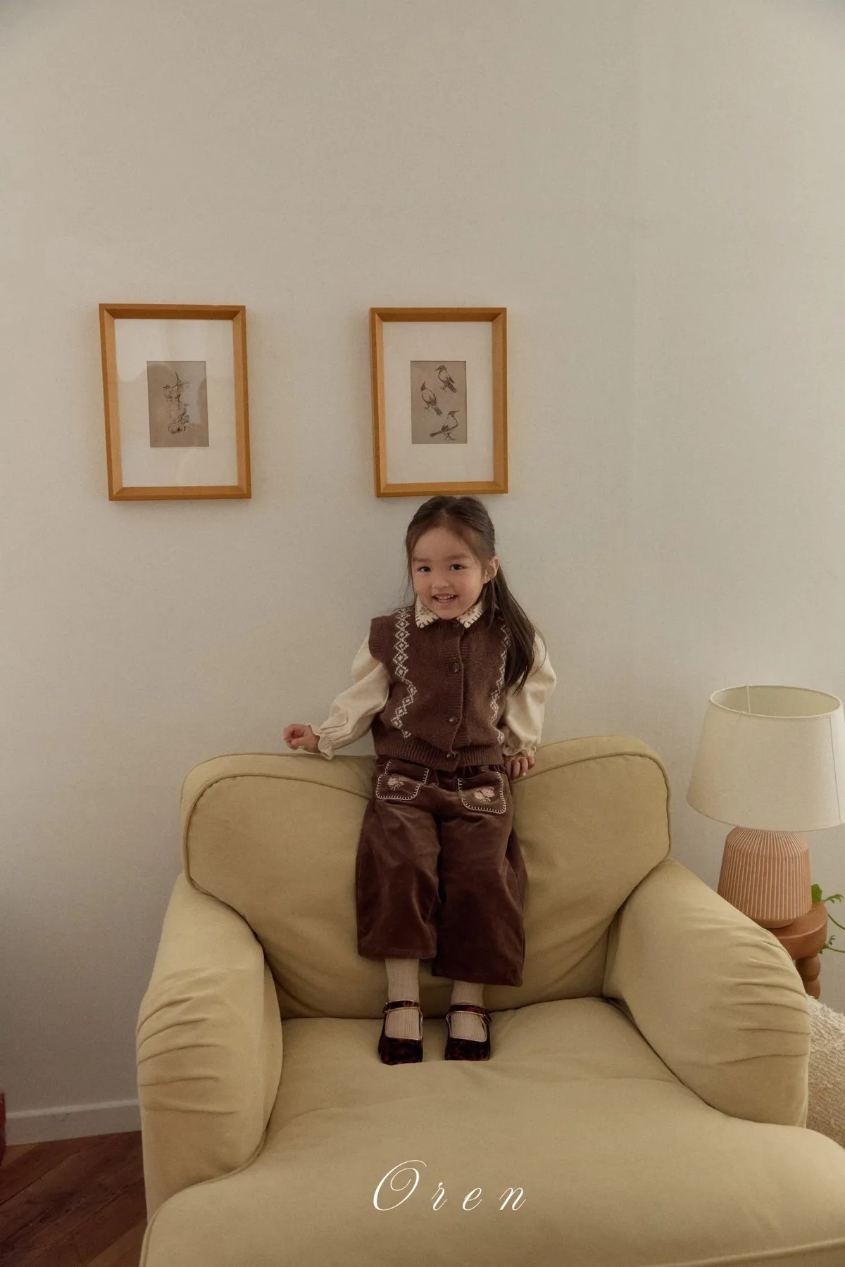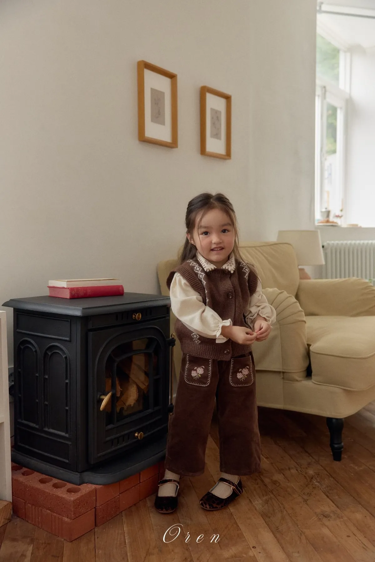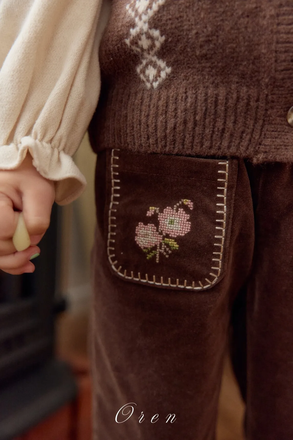 Oren小花燈芯絨長褲