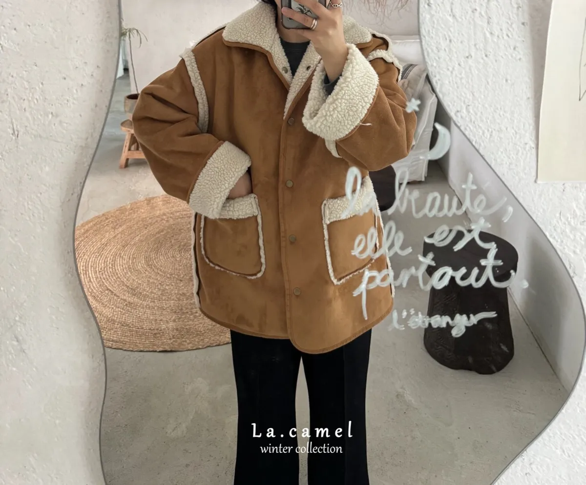 La.camel Teddy 雙面翻毛皮夾克(mom)