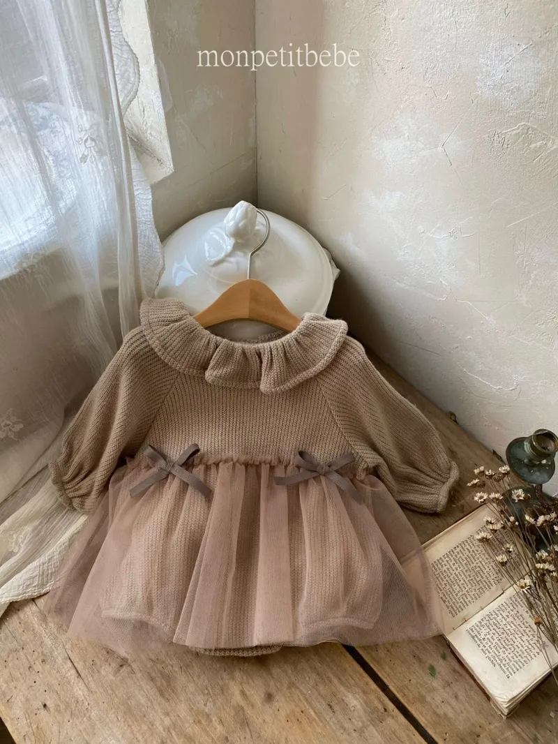 Monpetitbebe蝴蝶結紗紗包屁裙
